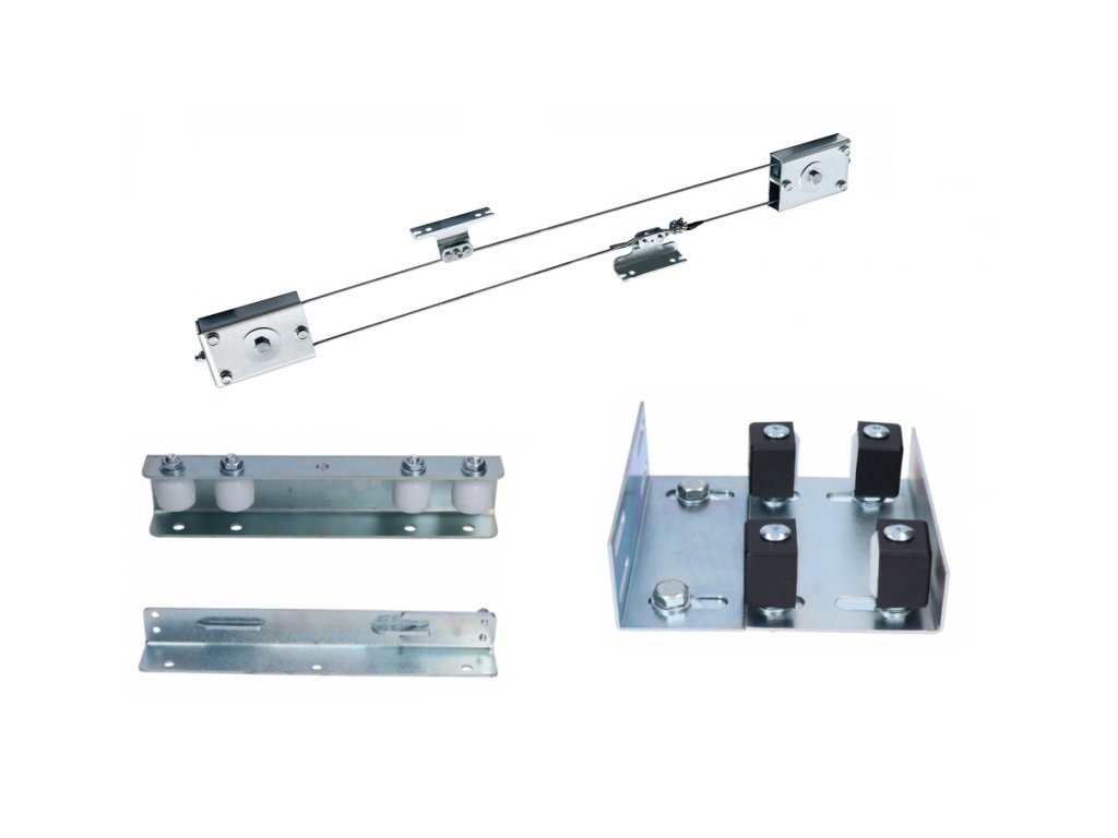 Sada komponentů z pozinkované oceli optimalizovaná pro instalaci posuvné teleskopické brány se 2 křídly. Pro teleskopické ovládání vícedílné brány lze zakoupit více teleskopických sad. Tento systém zajišťuje přenos energie z jednoho křídla brány na druhé. Sada je připravena k instalaci v pravém provedení. Při montáži na opačnou stranu platí stejné pokyny jako v návodu, ale je třeba je vykládat opačně - montáž upevňovacích sad proveďte opačně a křídla připravte opačně.