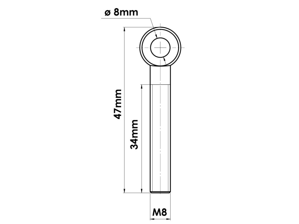 Úchyt pro držák lanka (M8x47mm), broušená nerez K320, INOX AISI304