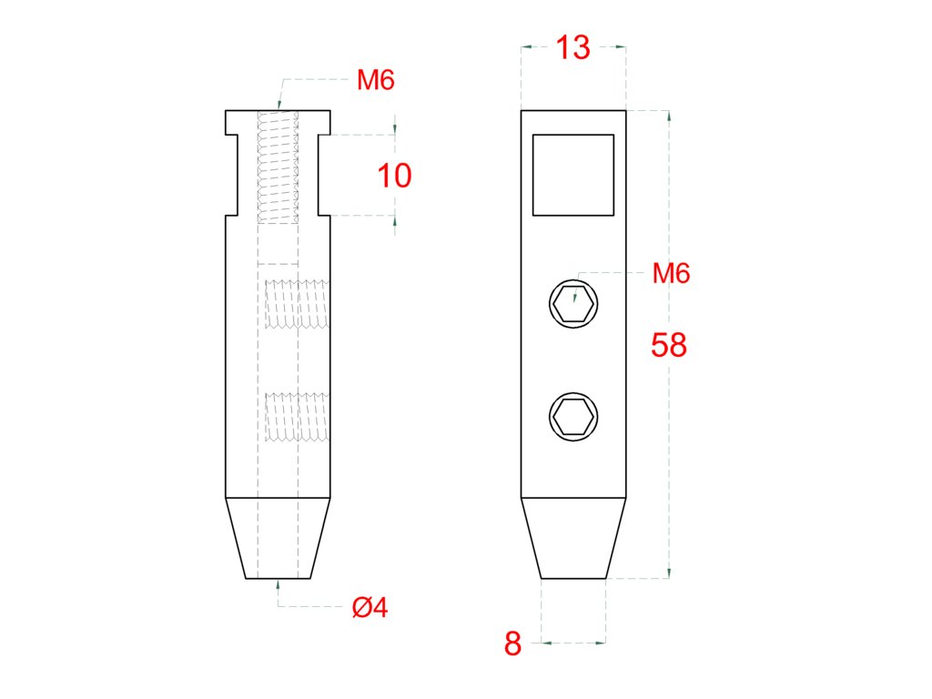 Úchytka se závitem M6 pro nerezové lano o průměru 4 mm, broušená nerezová ocel K320/ AISI304