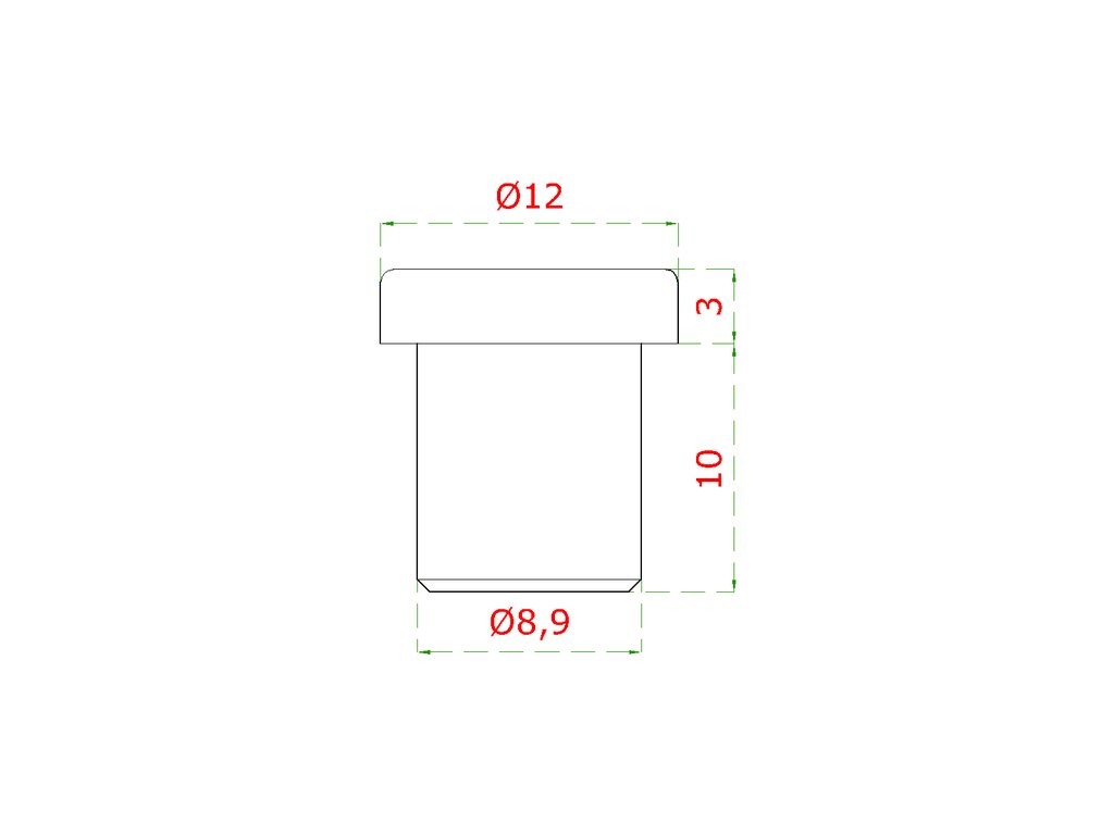 Nerezové zakončení pro vlepení do trubky nerezové výplně zábradlí ⌀12x1,5 mm (vnější průměr trubky 12 mm, tloušťka stěny 1,5 mm) z plného materiálu, nerezová ocel třídy AISI304 s broušenou povrchovou úpravou.