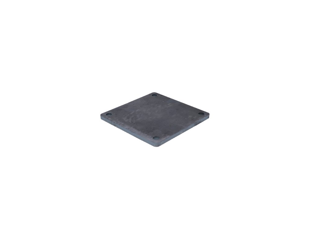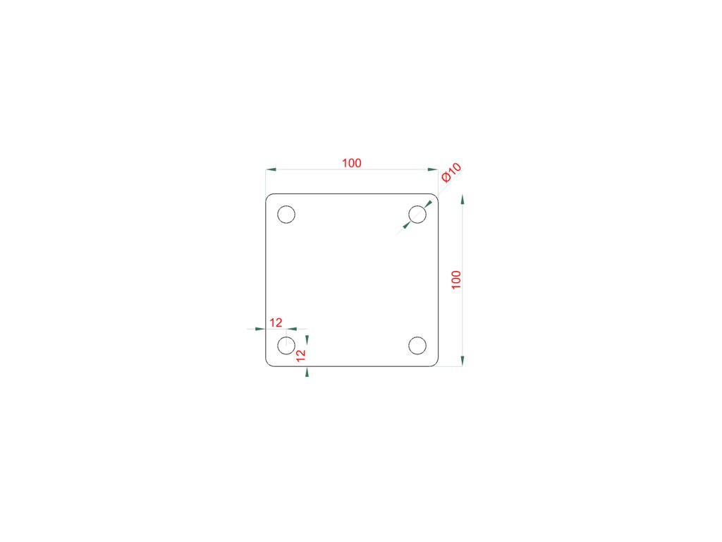 Rozměry 100 × 100. Tloušťka 10 mm. Rozteč otvorů 65x65. Průměr otvoru 10 mm. Surová ocel.