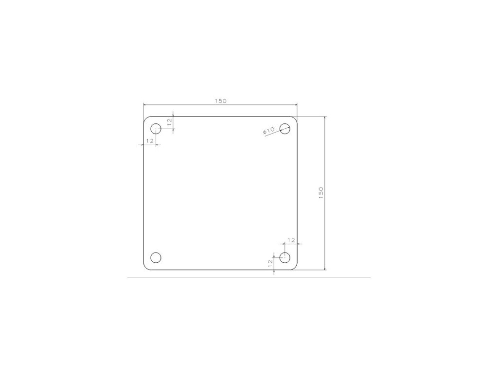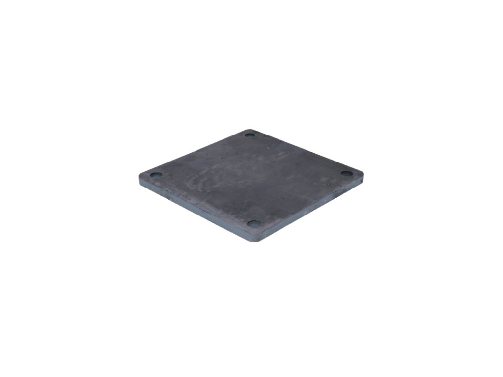 Rozměry 150 × 150. Tloušťka 10 mm. Rozteč otvorů 125x125. Průměr otvoru 10 mm. Surová ocel.