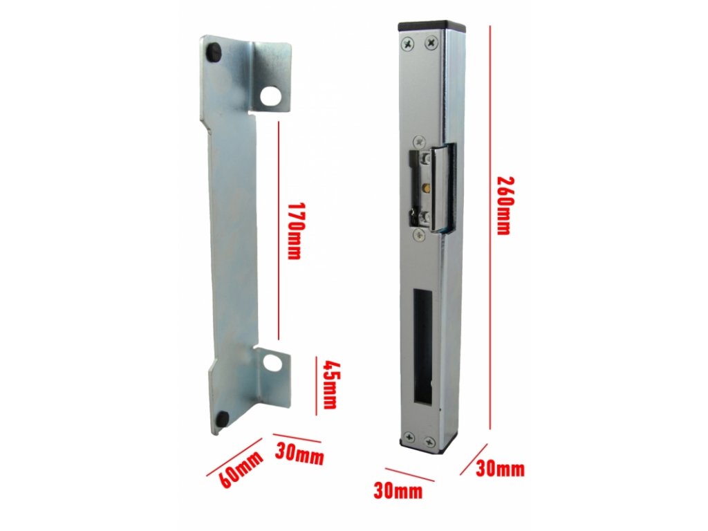 6-14V (AC/DC ) Pozinkovaná dorazová kazeta levá/pravá, s elektrickým zámkem ZE-05, 260x30x30mm