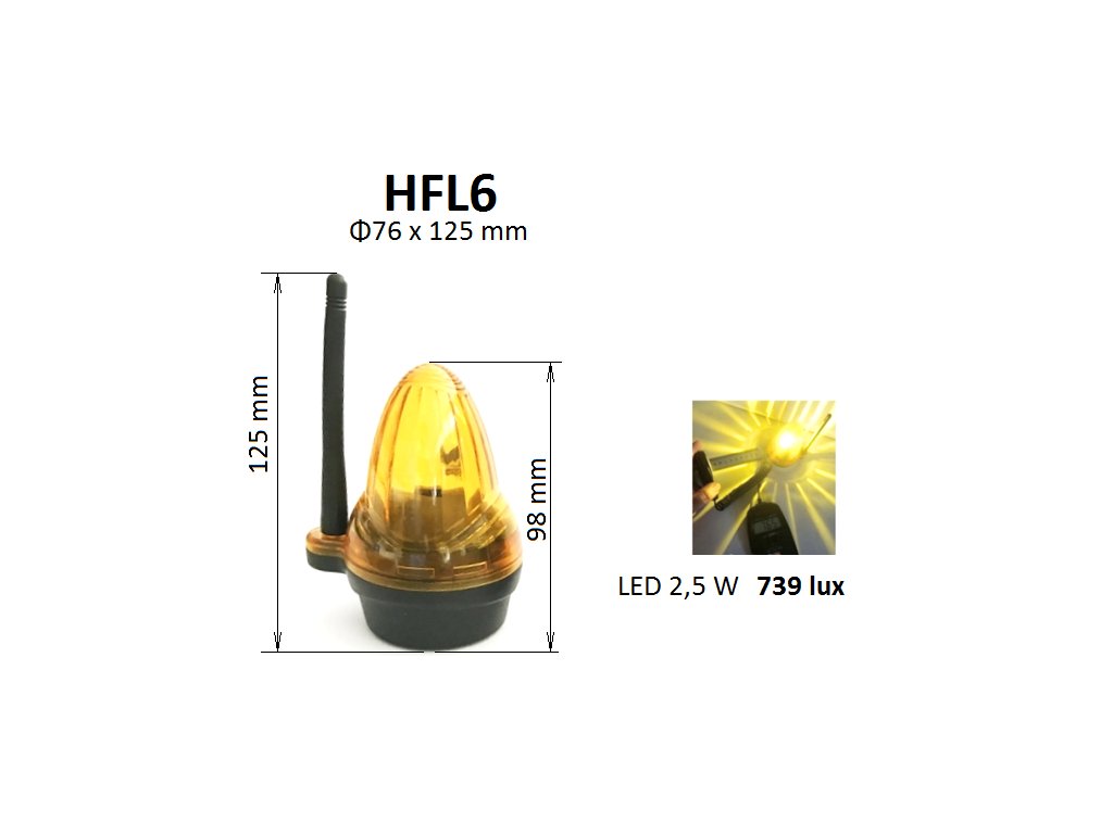 Univerzální oranžové výstražné světlo LED s anténou 12/24/230V - HFL6