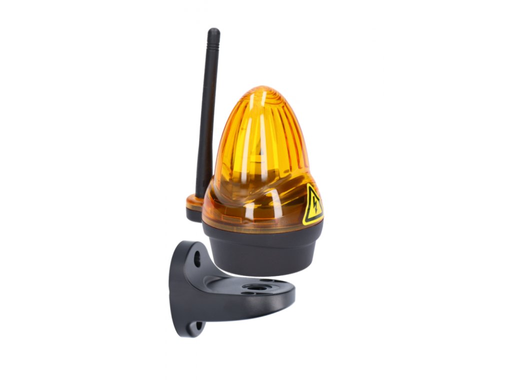 Oranžové výstražné světlo LED s anténou pro lepší dosah signálu.