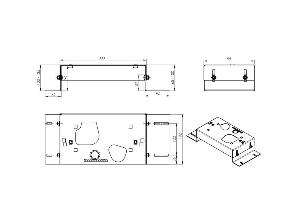 Pozinkovaná, výškově nastavitelná univerzální základna pro pohon posuvné brány.