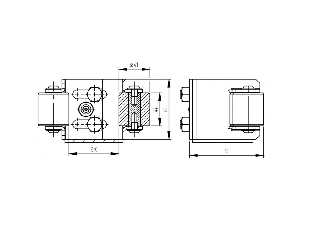 Celé tělo brány se tak může opřít o tento spodní doraz a odlehčit tak zatížení ložiskových rolek na vozících. Vozíky proto nemusí být trvale namáhány.