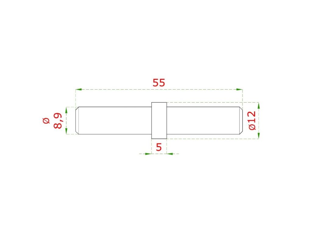 Nerezová, vnitřní, přímá spojka pro spojení dvou trubek (nejčastěji nerezová výplň zábradlí) ⌀12 mm (vnější průměr trubky 12 mm, tloušťka stěny 1,5 mm), nerezová ocel třídy AISI304 s broušenou povrchovou úpravou.