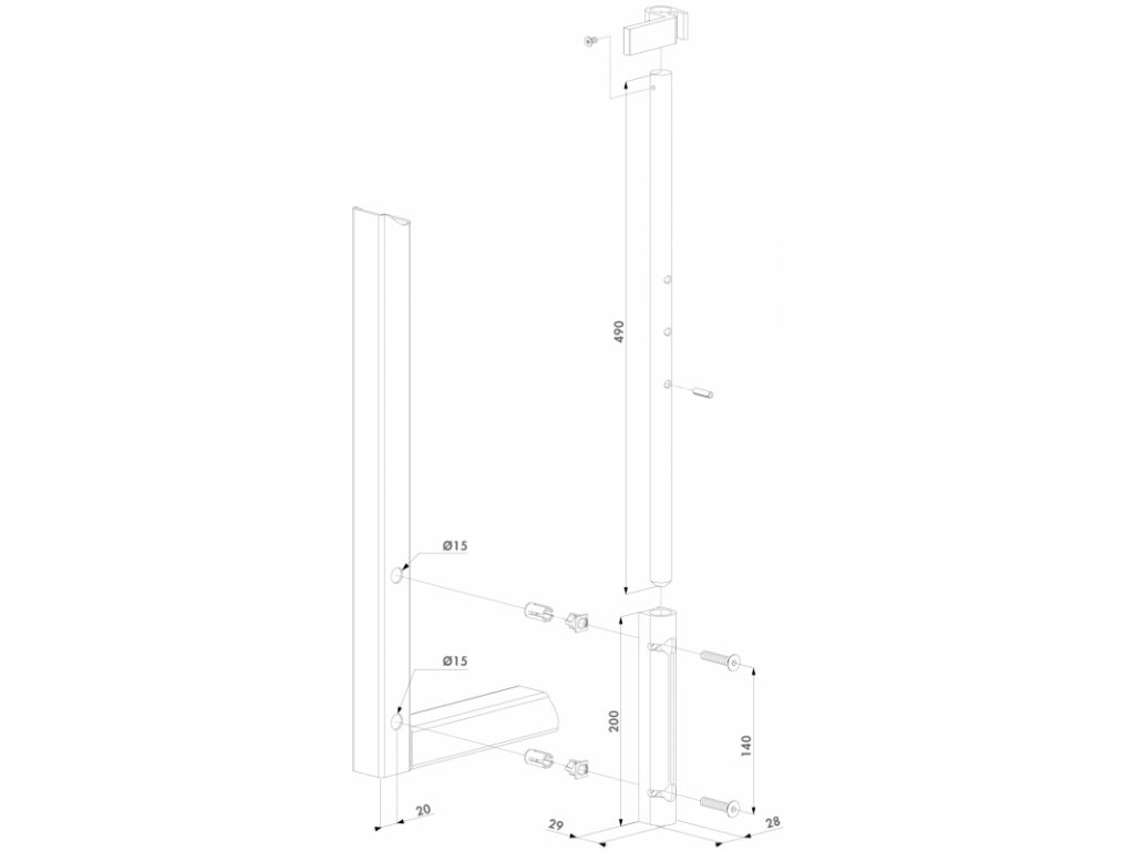 Zástrčka je vhodná pro profily 40x40 mm a větší a je vybavena dvěma šrouby Quick-Fix pro rychlou a snadnou instalaci