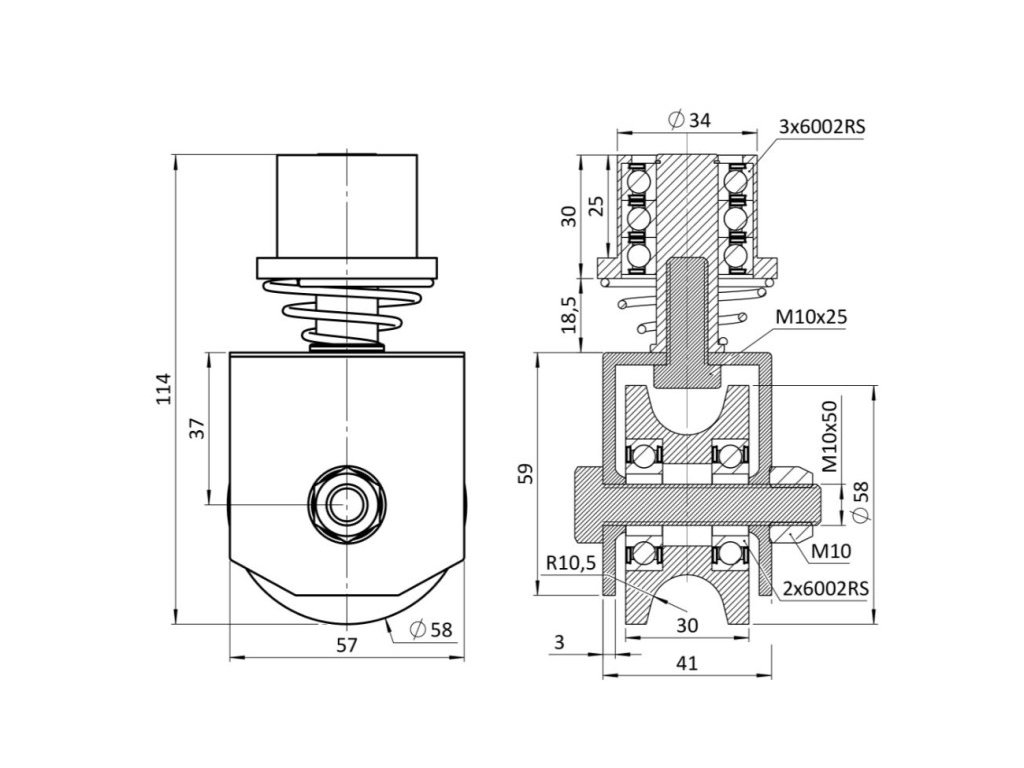 Vodicí kolečko 58 mm pro U-profil 20, otočné