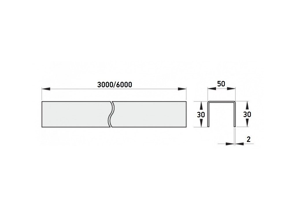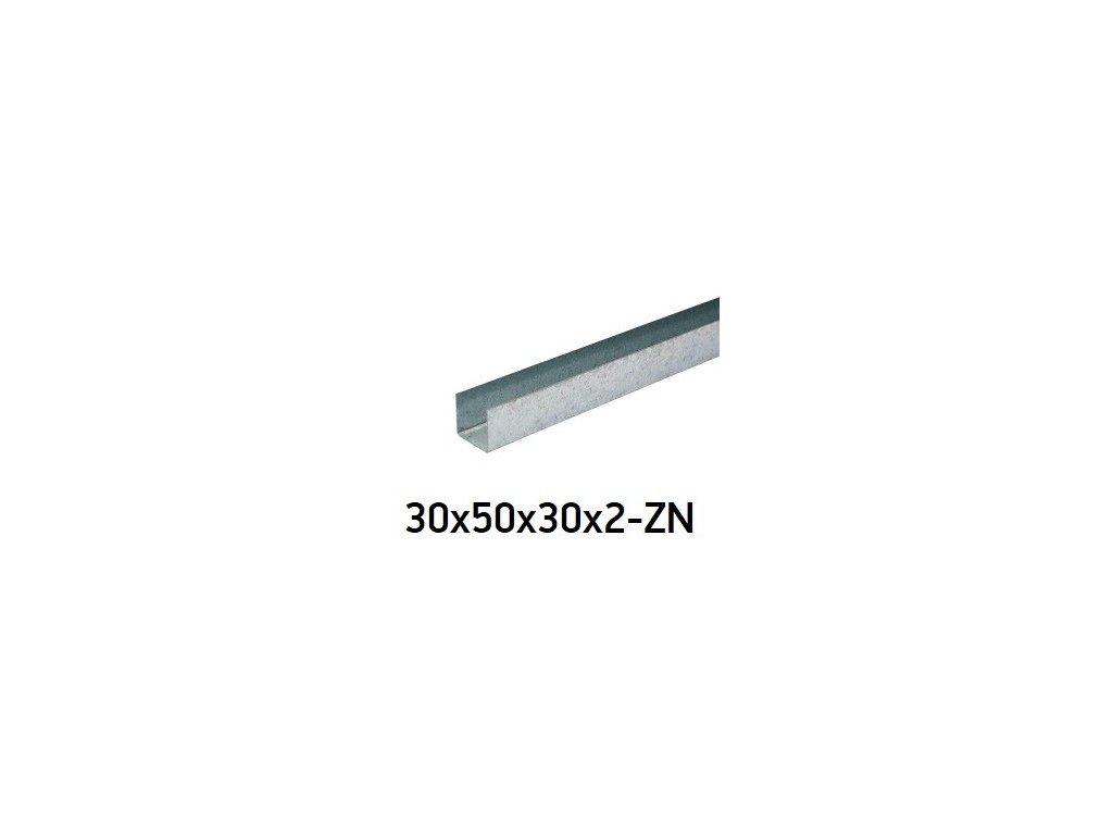 Pozinkovaný U-profil o rozměrech 30x50x30 mm a tloušťce stěny 2 mm. K dispozici v délkách 3 a 6 metrů.