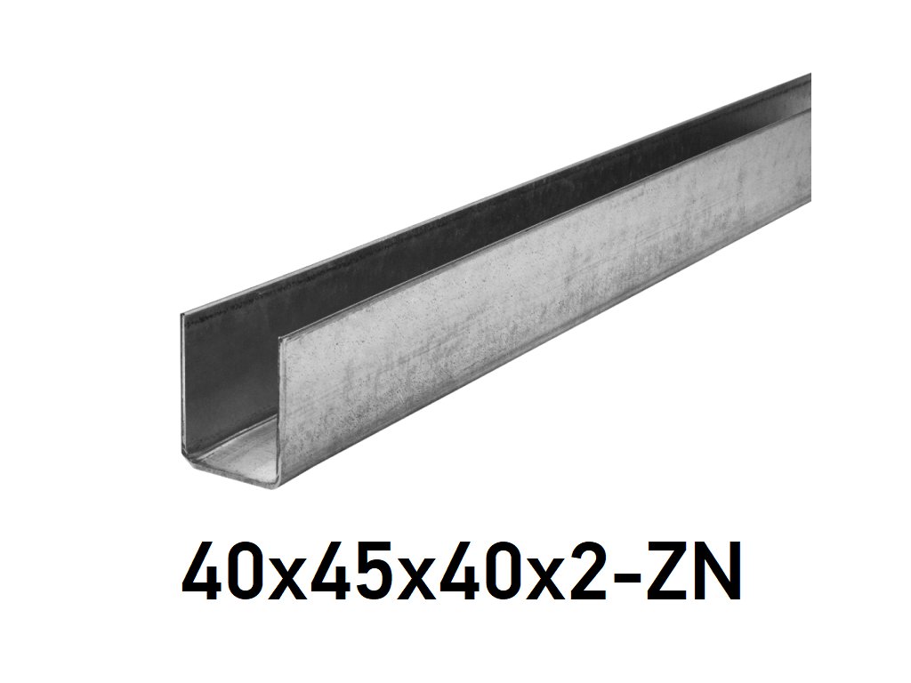 Pozinkovaný U-profil o rozměrech 40x45x40 mm a tloušťce stěny 2 mm. Dostupný v délce 3 nebo 6 metrů.