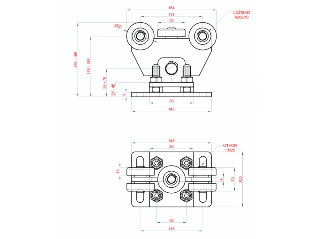 Vozík pro profil C-58x58x3mm , výškově nastavitelný