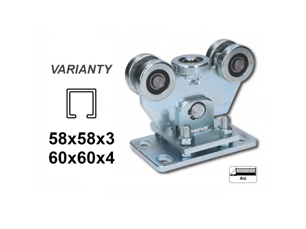 Celokovový vozík pro samonosné posuvné brány s šířkou průjezdu do 4 m a hmotností do 150 kg s pozinkovanou povrchovou úpravou . Vozík je dodáván s montážní deskou, která je součástí ceny.