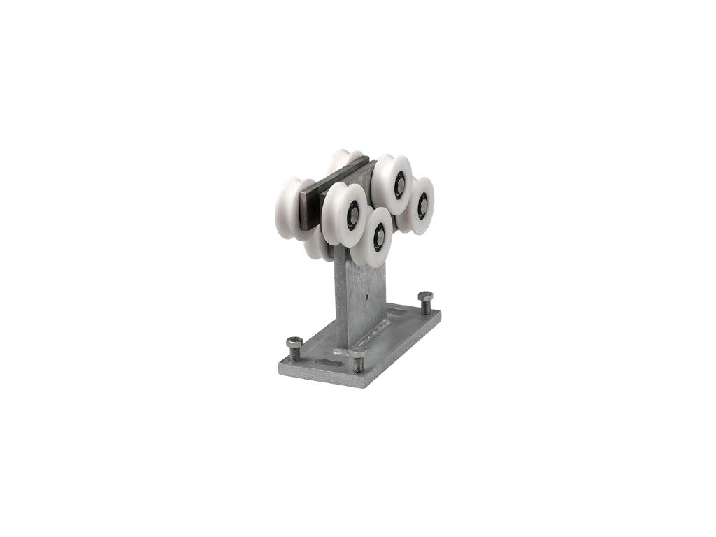 Na žárově pozinkovaném těle vozíku je 8 polyamidových ložiskových válečků o průměru 95 mm s výřezy pro vodicí oka profilu C. Čtyři válečky jsou nahoře, kde se dotýkají horních vodicích výstupků v profilu C, a čtyři válečky jsou posunuty o něco níže a dotýkají se spodních vodicích výstupků v profilu C.