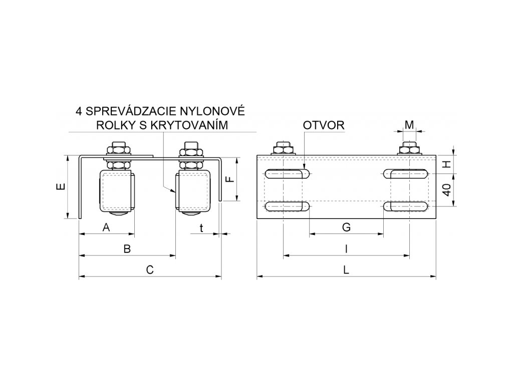 Povrchová úprava: zinek. Potahované nylonové role. Montáž shora.