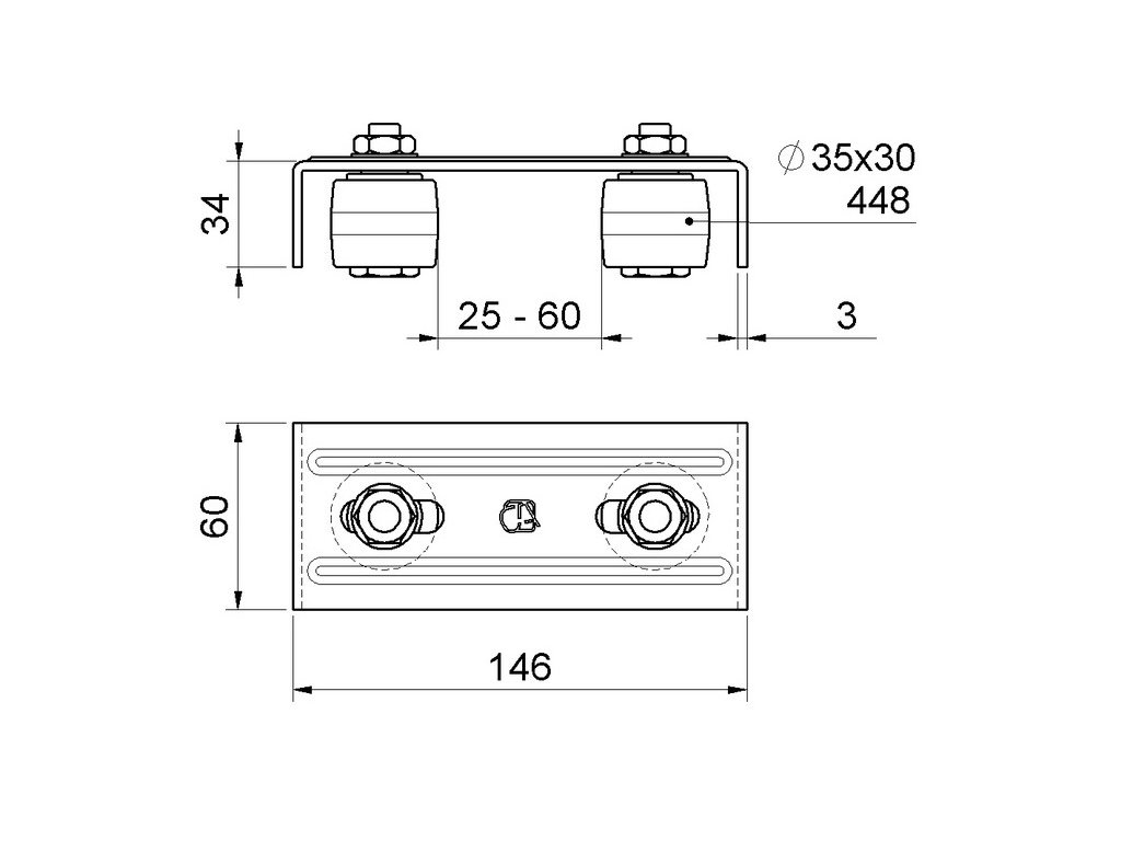 Vrchní vedení se dvěma nastavitelnými nylonovými rolemi 35x30 mm
