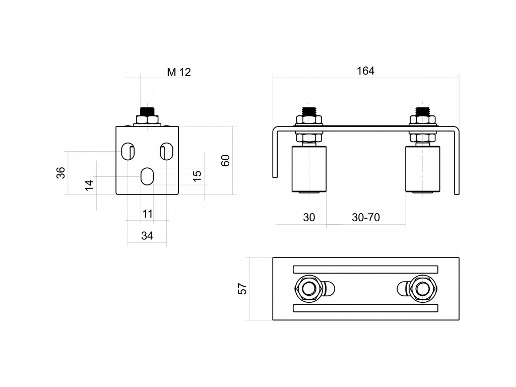 Horní vedení pro posuvné brány se dvěma nastavitelnými válečky. Průměr použitých válců je 30 mm a tyto válce jsou nylonové. Tento dvouválcový držák je určen k přivaření nebo přišroubování ke sloupku nebo ke stávajícímu oplocení na vašem pozemku.