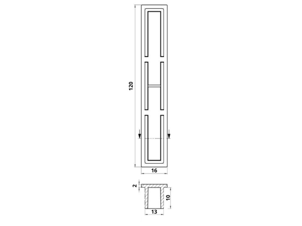 Záslepka je určena pro použití s hliníkovou lamelou o rozměru 120x16mm, pro jednoduché a účinné řešení uzavření hliníkové lamely.