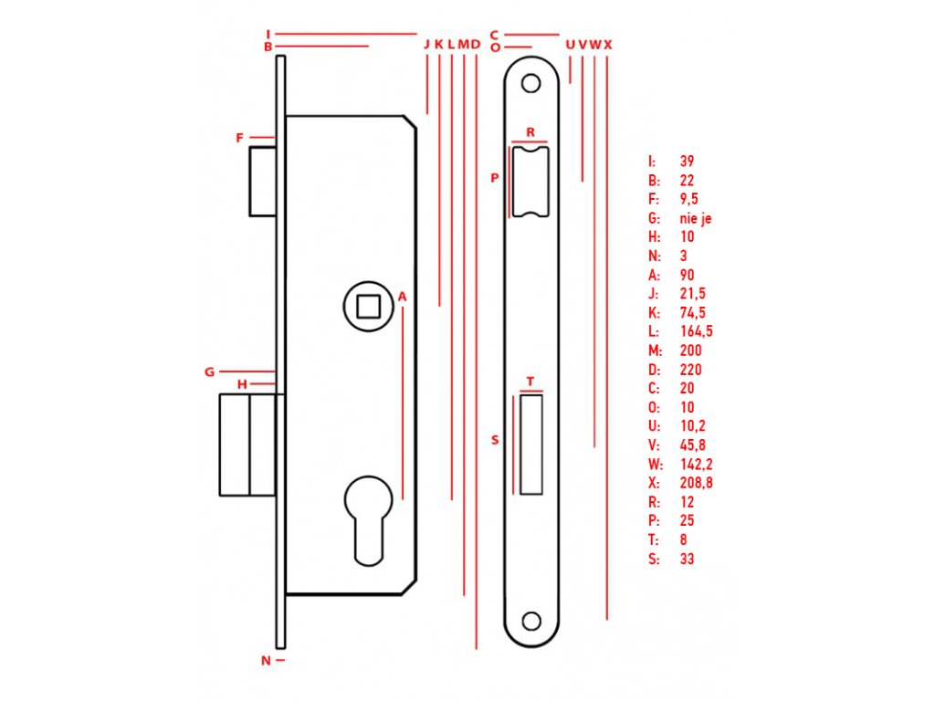 Zámek branky s univerzálním jazykem. Třtinu lze nastavit pro pravou i levou branku. Vhodné pro venkovní i vnitřní použití. Uzamčení na jednom západě.