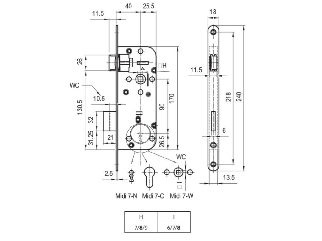 Zámek brány s oválným čelem pro zapuštění 65 mm, ZZ-08