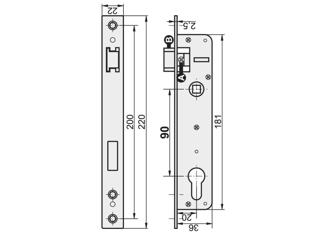Zámek brány se čtvercovým čelem pro zapuštění 35 mm, ZZ-03