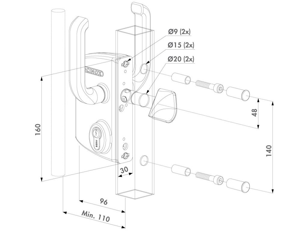 Zámek je určen pro dveřní profil o minimální šířce 60 mm.