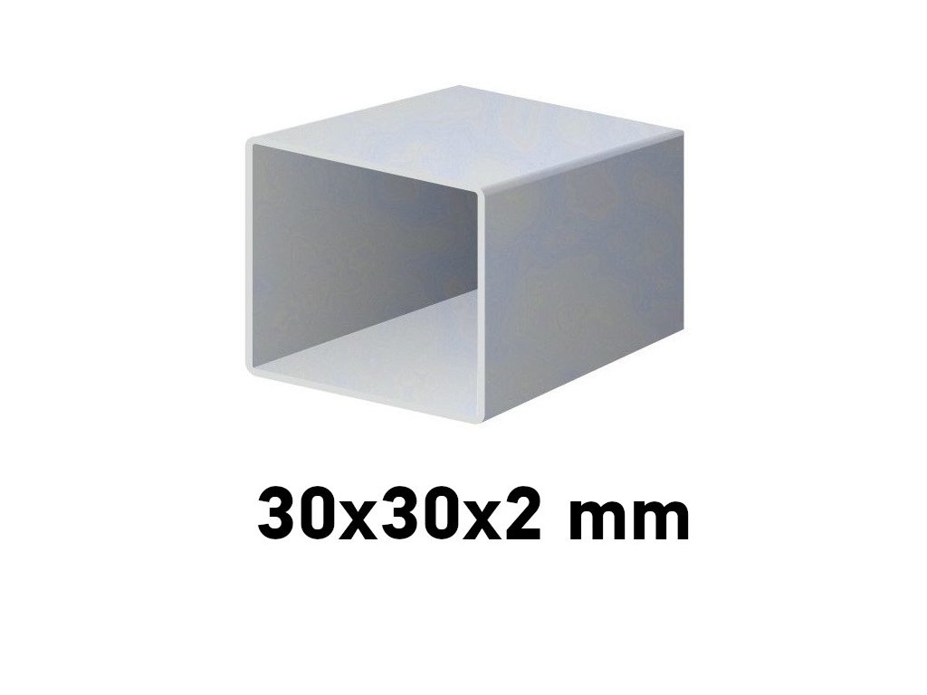 Uzavřený jäklový profil o rozměrech 30x30 mm a tloušťce 2 mm. S pozinkovaným povrchem, hladké.