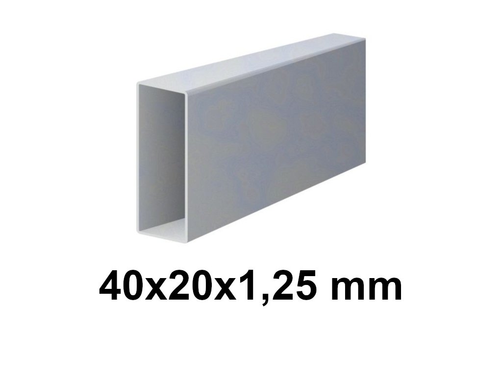 Uzavřený profil jha o rozměrech 40x20 mm a tloušťce 1,25 mm. S pozinkovaným povrchem, hladké.