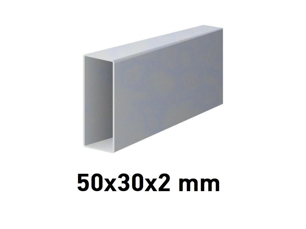 Uzavřený jäklový profil o rozměrech 50x30 mm a tloušťce 2 mm. S pozinkovaným povrchem, hladké.