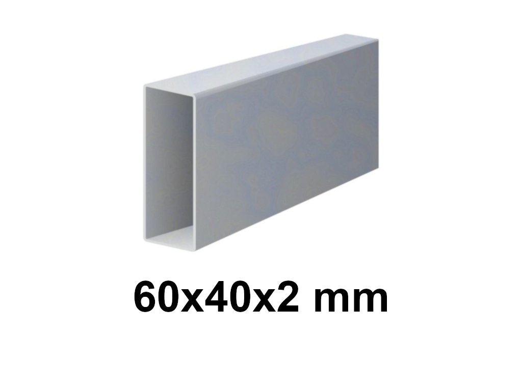 Uzavřený jäklový profil o rozměrech 60x40 mm a tloušťce 2 mm. S pozinkovaným povrchem, hladké.