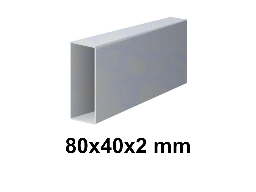 Uzavřený jäklový profil o rozměrech 80x40 mm a tloušťce 2 mm. S pozinkovaným povrchem, hladké.