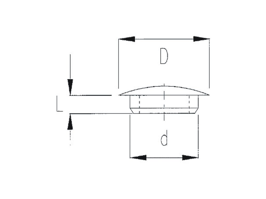 Zvolte zaslepovací zátku podle průměru zaslepovaného otvoru na výkrese označeného jako d nebo podle hloubky zaslepení označené jako L. Doporučuje se také vzít v úvahu celkový průměr hlavy zátky označený na výkresu písmenem D.