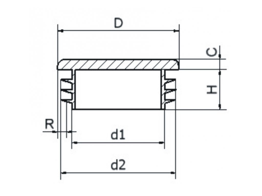 Zvolte zátku podle vnějšího průměru trubky označeného na výkrese D a tloušťky stěny označené R.