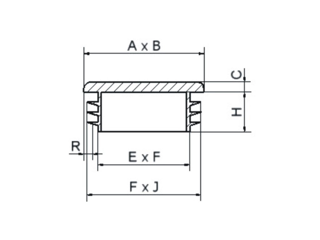 Zvolte zátku podle vnějšího rozměru profilu na výkrese označeného A × B a tloušťky stěny označené R.