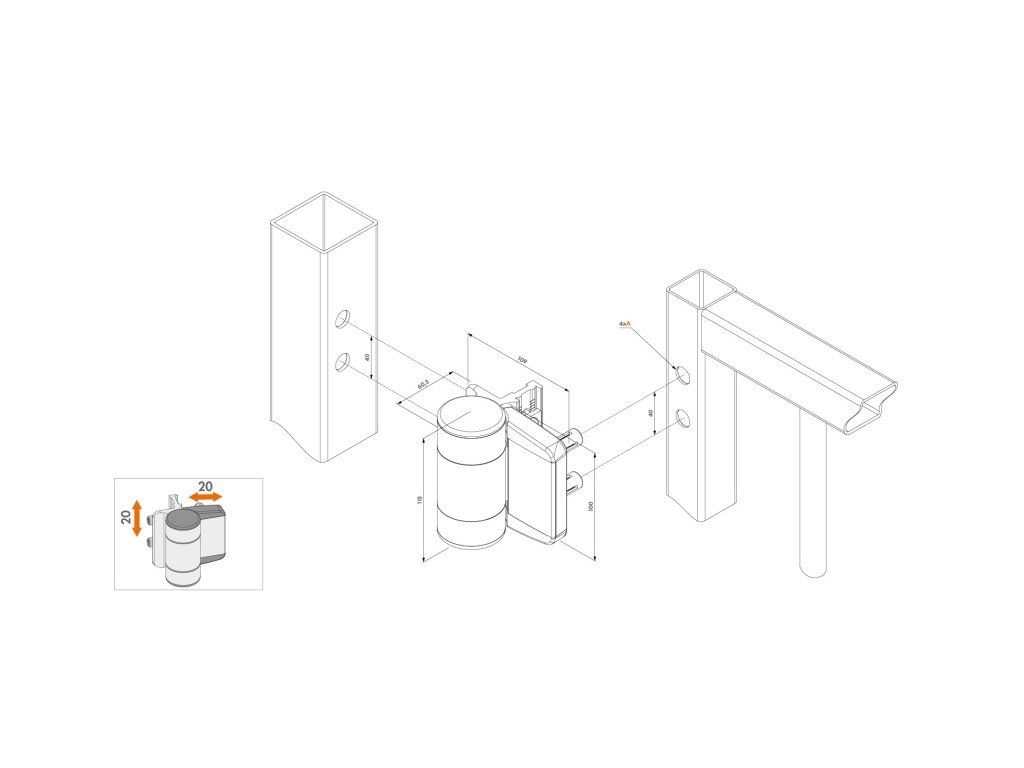 Přesné nastavení závěsu pro vaši bránu je možné pomocí horizontálního i vertikálního vyrovnání až o 20 mm.