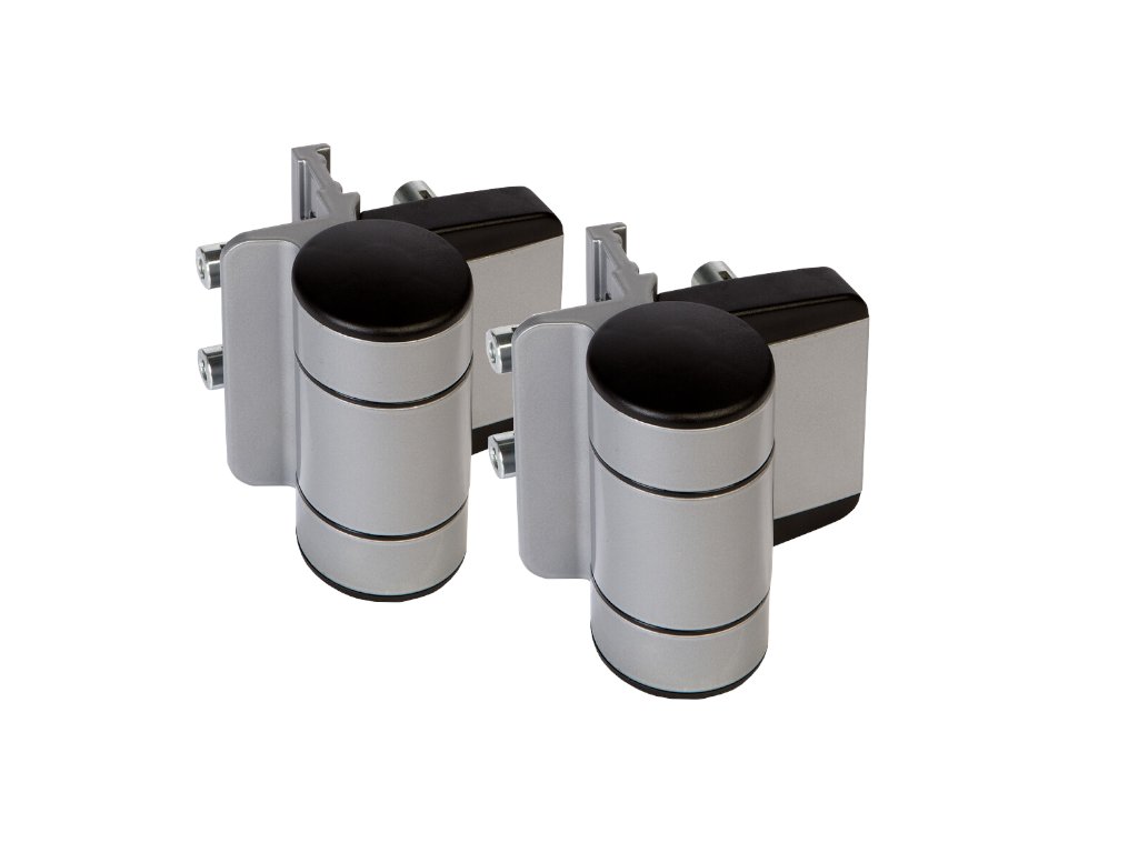 Závěsy pro křídlové brány a dveře s ložisky z nerezové oceli Locinox DINO, určené k přišroubování pomocí systému Rychlá oprava.