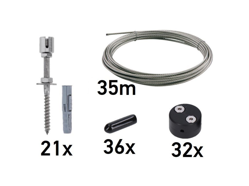 Sada je navržena pro umístění přírub ve vzdálenosti 500x500 mm a plastové spojky na laně ve vzdálenosti 500x500 mm kromě.
