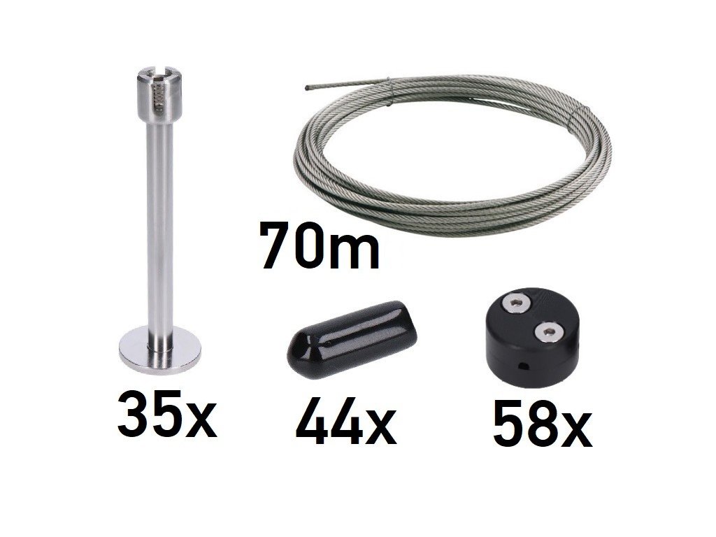Sada je navržena pro umístění přírub ve vzdálenosti 500x500 mm a plastové spojky na laně ve vzdálenosti 500x500 mm kromě.